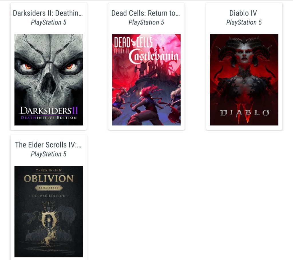 PS5 – I’m starting to actively collect PS4/PS5 titles now. You’ll notice a theme with another copy of Darksiders 2 (I have a problem) and Oblivion (Skyrim’s predecessor).
