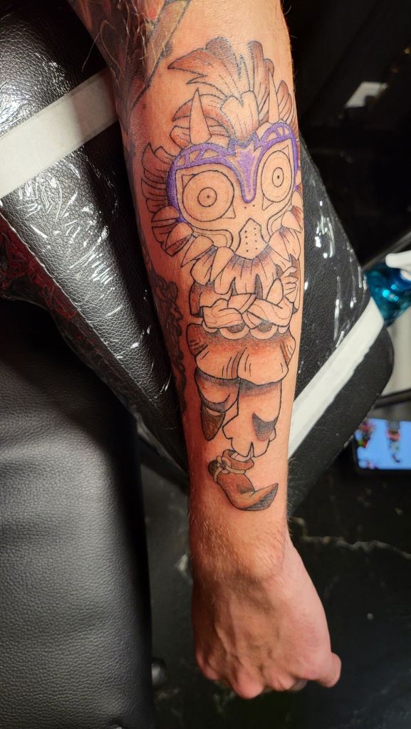 I love October themed stuff anyways so a lot of the flash art was appealing to me off the bat. One particular style caught my eye, what I know as “New School” (or Skool if you’re really cool). Found a nice little match stick (I was looking for gap fillers for my sleeve) but alas, ZombieFish messaged she was ready for pick-up. I told the artist I would be back (I’m sure they hear that all the time) and took off to do some parenting.