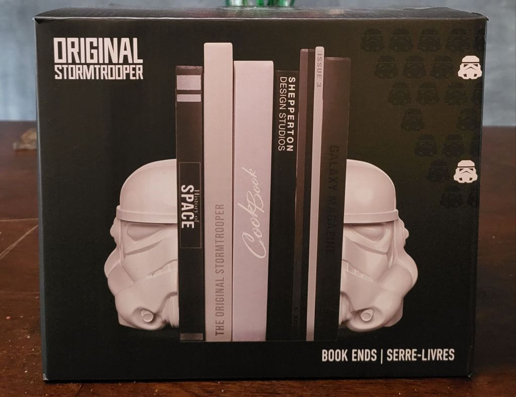 But the big win on this run was bookends. Zombie has been looking for months and you’d be surprised how hard it is to find good ones. On our semi-regular visit to winners where we found the above mug, we still had no luck in the usual houseware section. We always do a walk through of the geeky area and kids toys in case we find some cool Funko pops, etc. I wouldn’t have seen these but somehow she spotted them and they’re perfect.