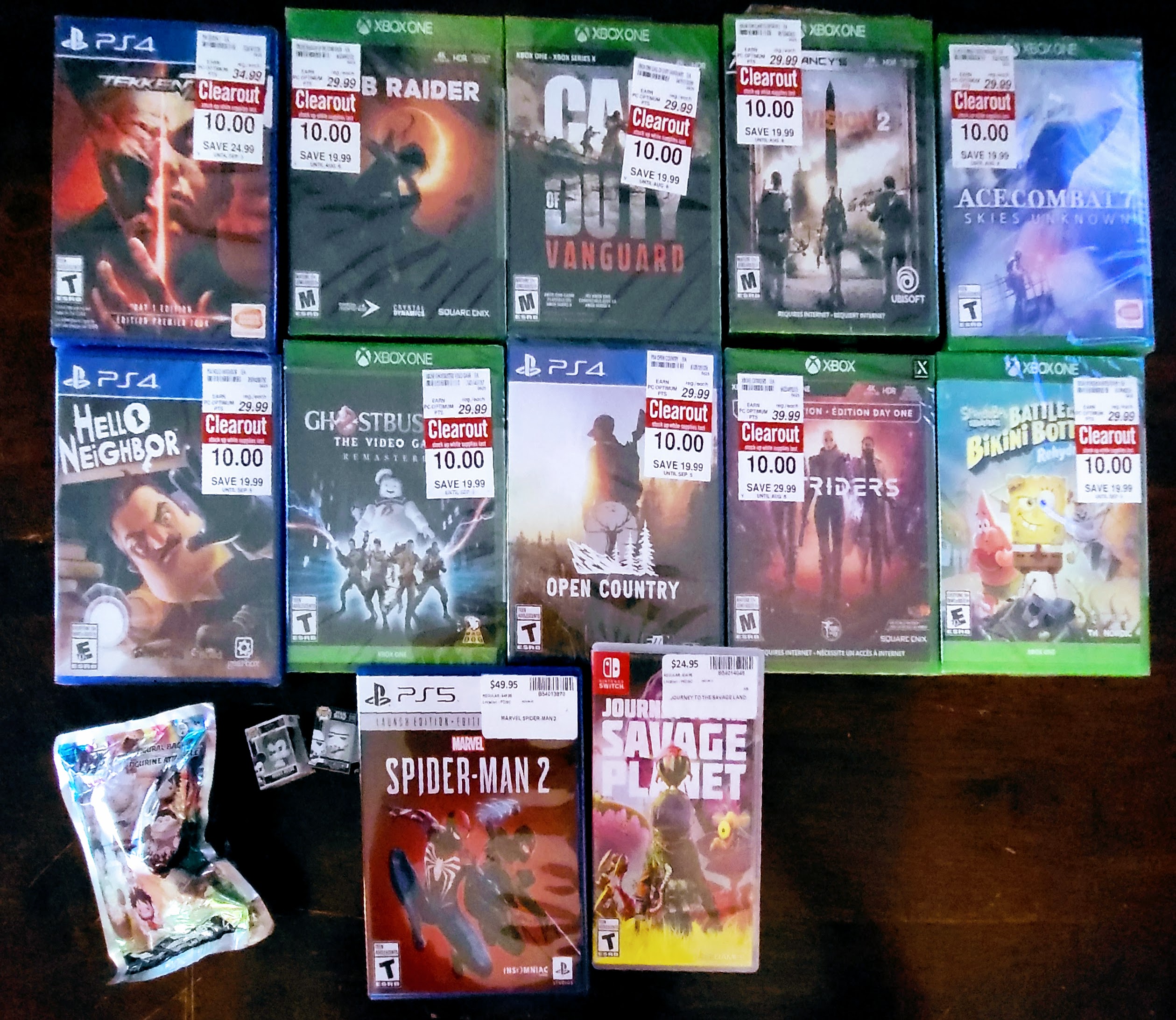 I had generally been ignoring this section of the store since Shoppers announced they were getting out of the electronics business. Although this was my favorite location for grocery shopping it didn’t have a great game section to begin with. From what I could tell the only remaining games were Xbox One titles behind a glass case and they were still at full retail price. So it became a routine to quickly look at the case, make sure nothing was on clearance and move on. But to the next of this section was a cart and some baskets, evidently the most recently clearanced items in the store that had yet to be put on shelves or out front to be seen. I thought nothing of it but then did a double-take when a PS5 logo appeared amidst a small collection of movies. Long story short, I grabbed every non-sports title.