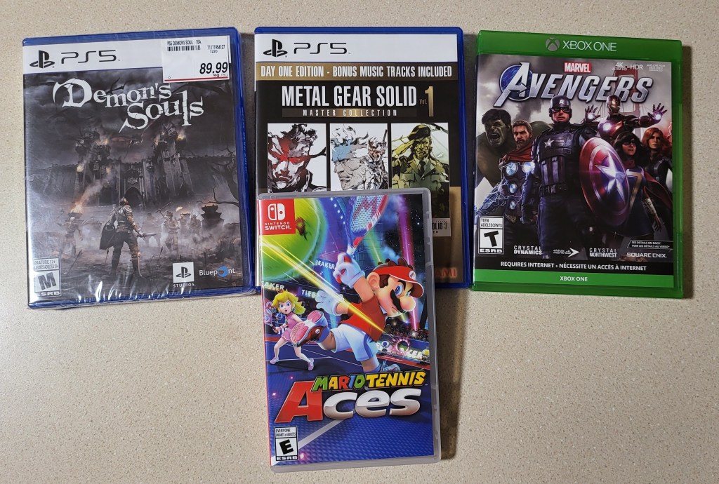 All the games were at least 50% off. Demon’s Souls (24.99), Metal Gear (27.49), Avengers (14.99) and finally a Nintendo first-party game, Mario Tennis Aces (39.99). All these cost me only the tax ($16.12) and roughly 70K in points.